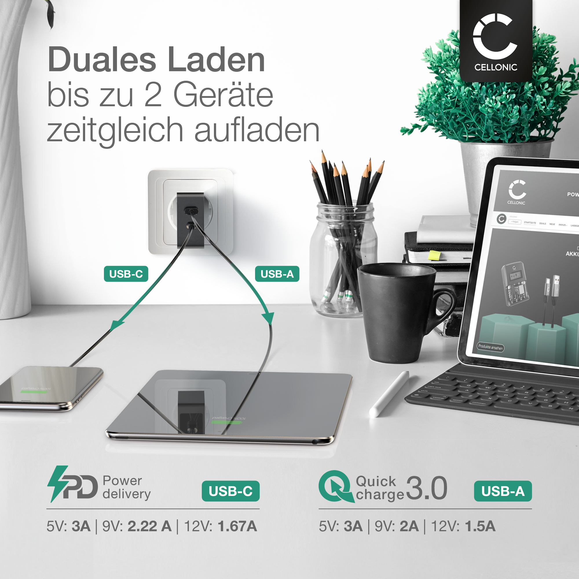USB Ladegerät mit 2 USB Anschlüssen USB-C und USB-A für schnelles, sicheres und gleichzeitiges Laden von bis zu 2 Geräten - perfekt für Ihr Smartphone, Tablet, Kopfhörer, Zahnbürste & mehr.