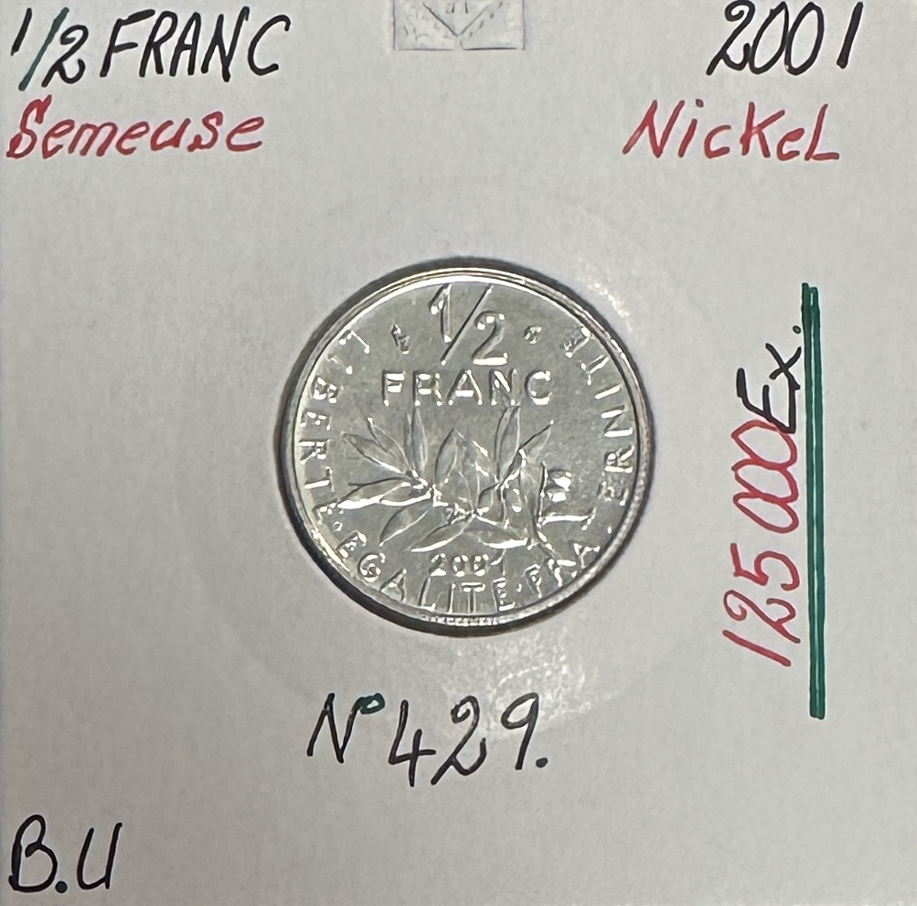 1/2 FRANC SEMEUSE - 2001 - Pièce de Monnaie en Nickel // Qualité : BU
