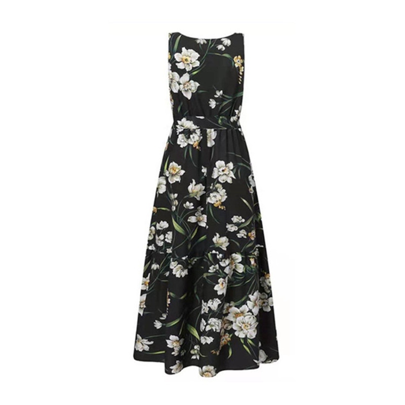 -Features:Europe and America Vacation Leopard Print Sleeveless Vest With Belt Tropical Print Spliced Lace-up Skirt Dress