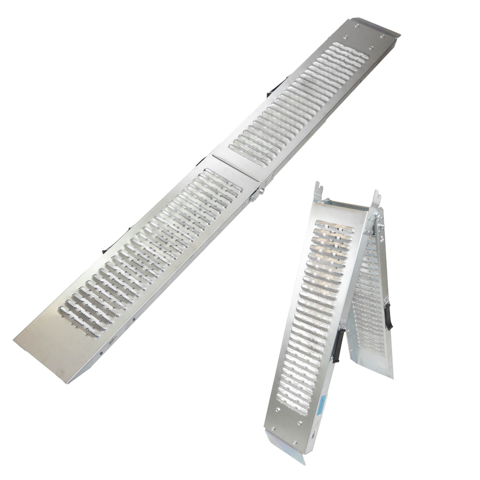 - B TRANSPORTSICHERUNG: Dank praktischer Tragegriffe und einer zusätzlichen Hebelsicherung bleibt die Rampe im eingeklappten Zustand zuverlässig geschlossen