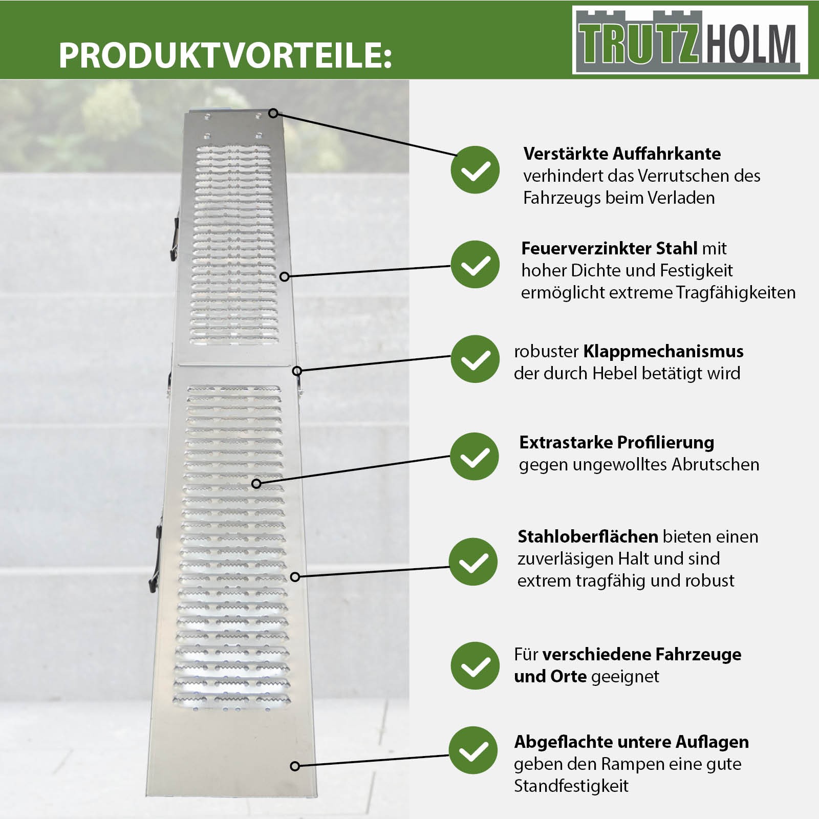 - B ROBUSTE STAHLKONSTRUKTION: Die Rampe besteht aus stabil verarbeitetem Stahl und ist trotz geringem Gewicht sehr widerstandsfähig