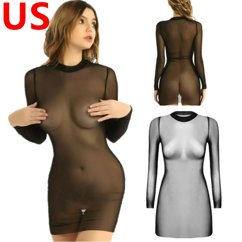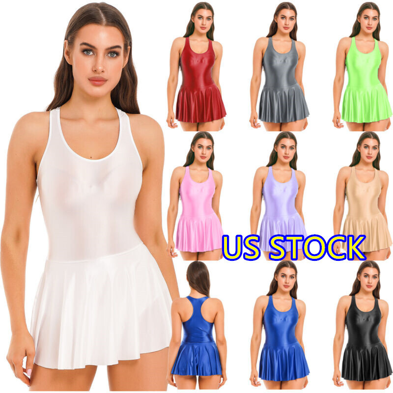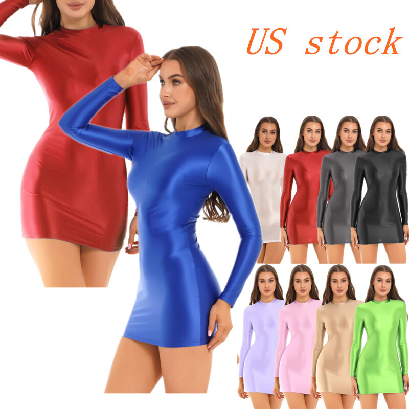 Women's Oil Glossy Dress Long Sleeve Bodycon Dresses Shiny Sexy Casual Clubwear