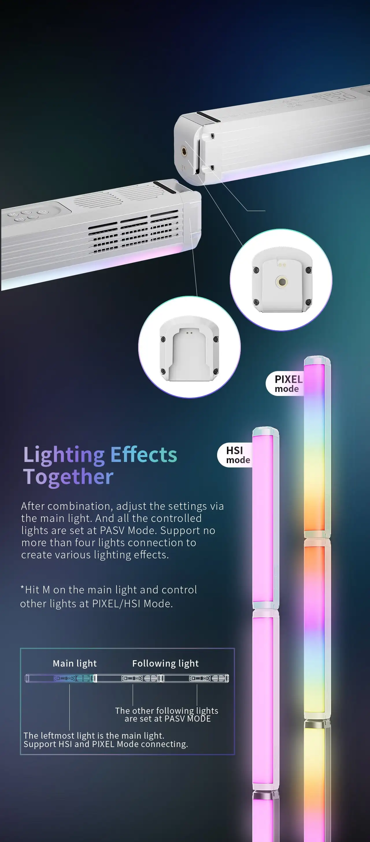 Each end of the tube light features a hot shoe mount, which allows you to combine SIRUI T30 Tube Lights conveniently, without using any screws.