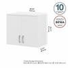 The Bush Business Furniture Universal Wall Cabinet with Doors and Shelves features a commercial quality design and contemporary styling that suits virtually any home or professional environment. Organize your office, breakroom, garage, laundry room or another work or living space with a wall mounted cabinet that's built to last and boasts plenty of practical storage capacity. Cabinet doors with smooth Euro-style hinges open to reveal one fixed shelf and one adjustable shelf that accommodate office supplies, tools and household items of various sizes. The total weight capacity of the small wall shelf is 30 pounds. For best use, mount wall studs 16 inches apart during installation. This wall storage cabinet has been tested to meet ANSI/BIFMA standards for safety and performance and is backed by a 10 Year Warranty. Complete your space with Universal's full line of modular storage solutions.
