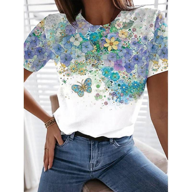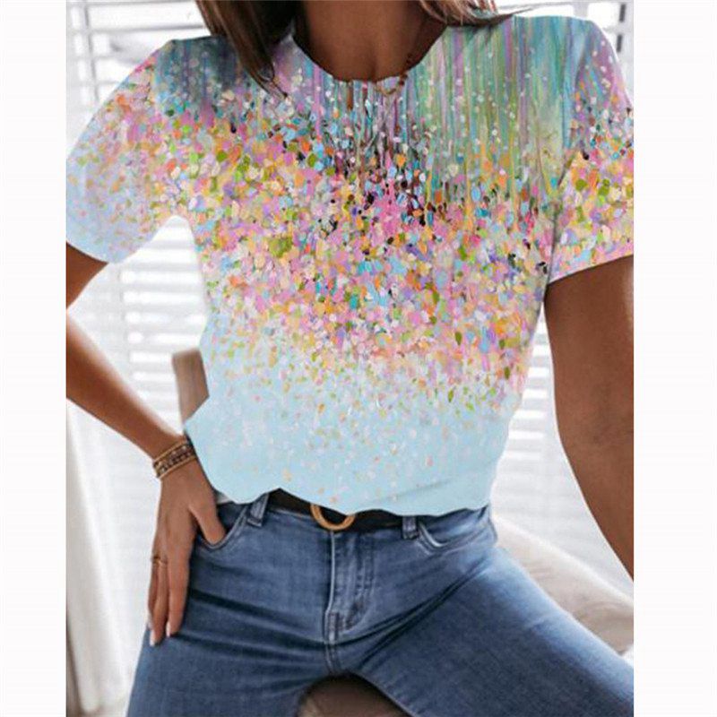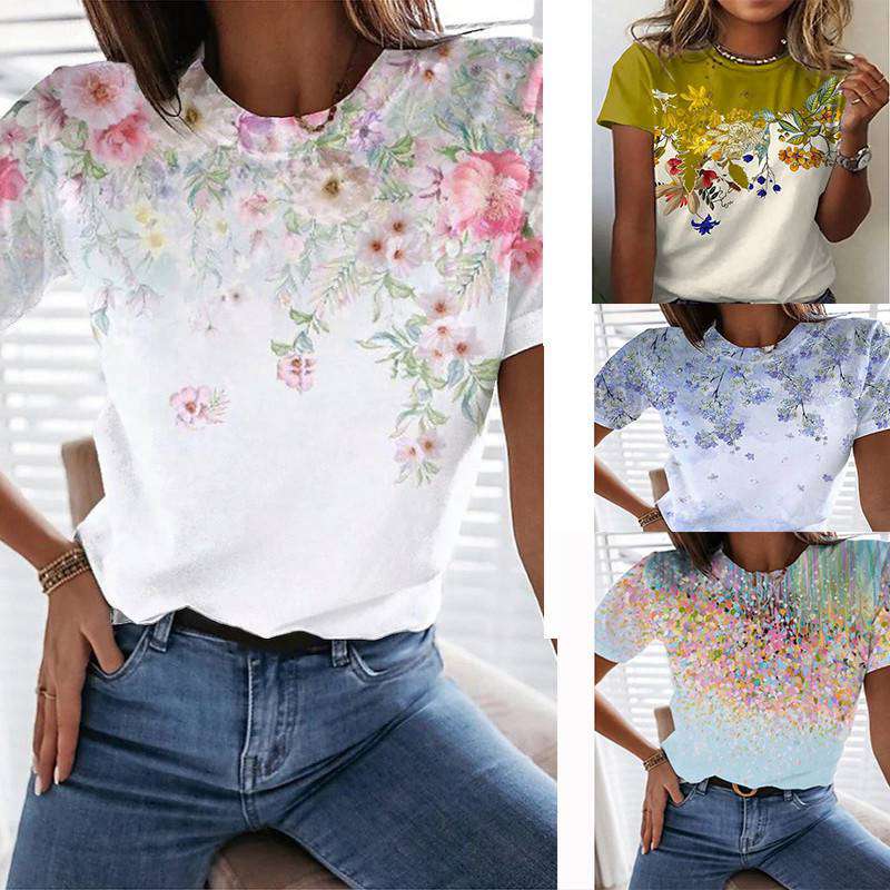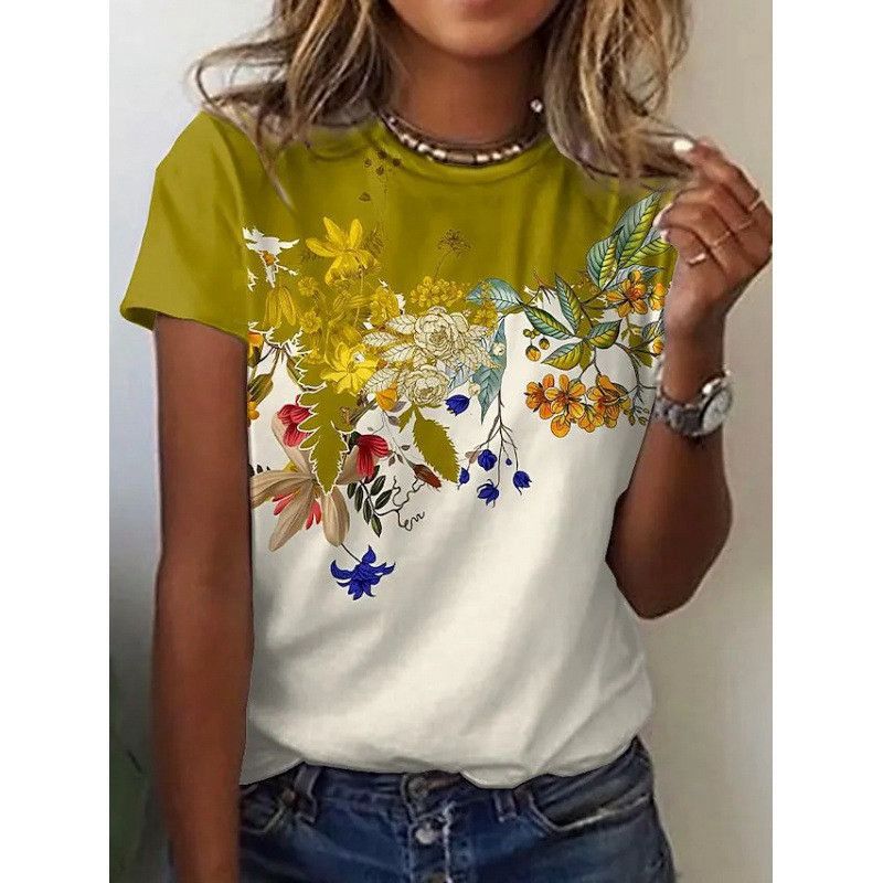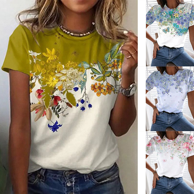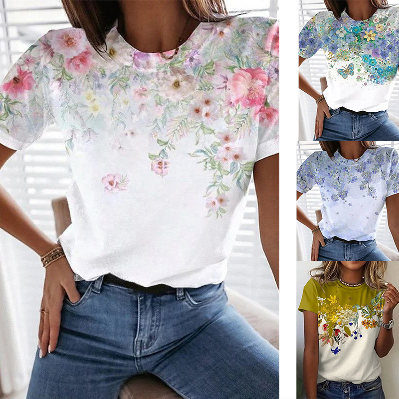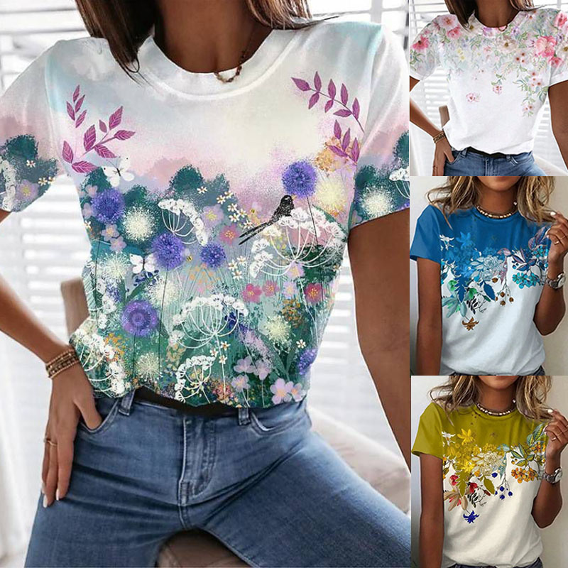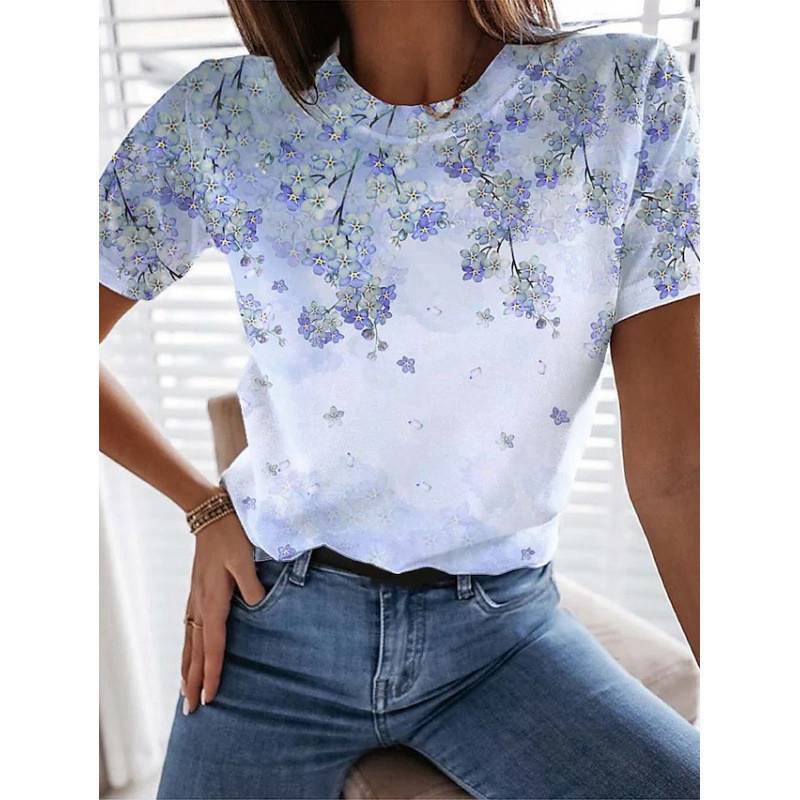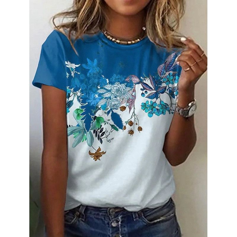 Womens Printing Casual Basic T-shirt Tops Ladies Summer Short Sleeve Tee Blouse