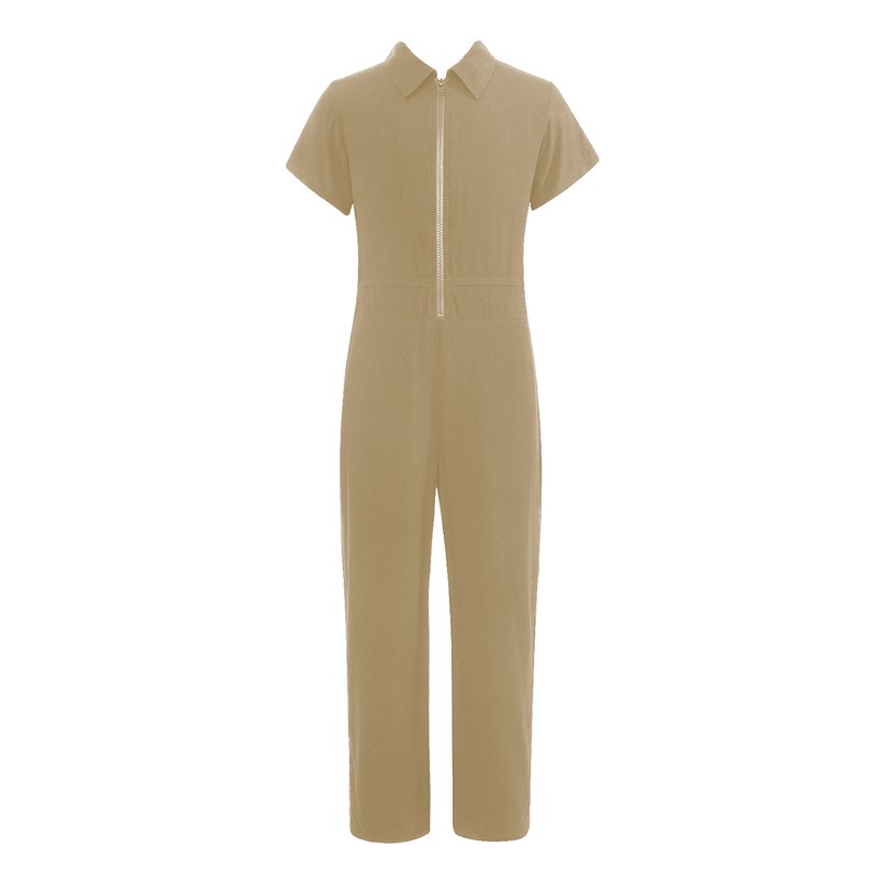 The jumpsuit features with short sleeve and turndown collar, zipper closure in the front, easy to put on or take off.