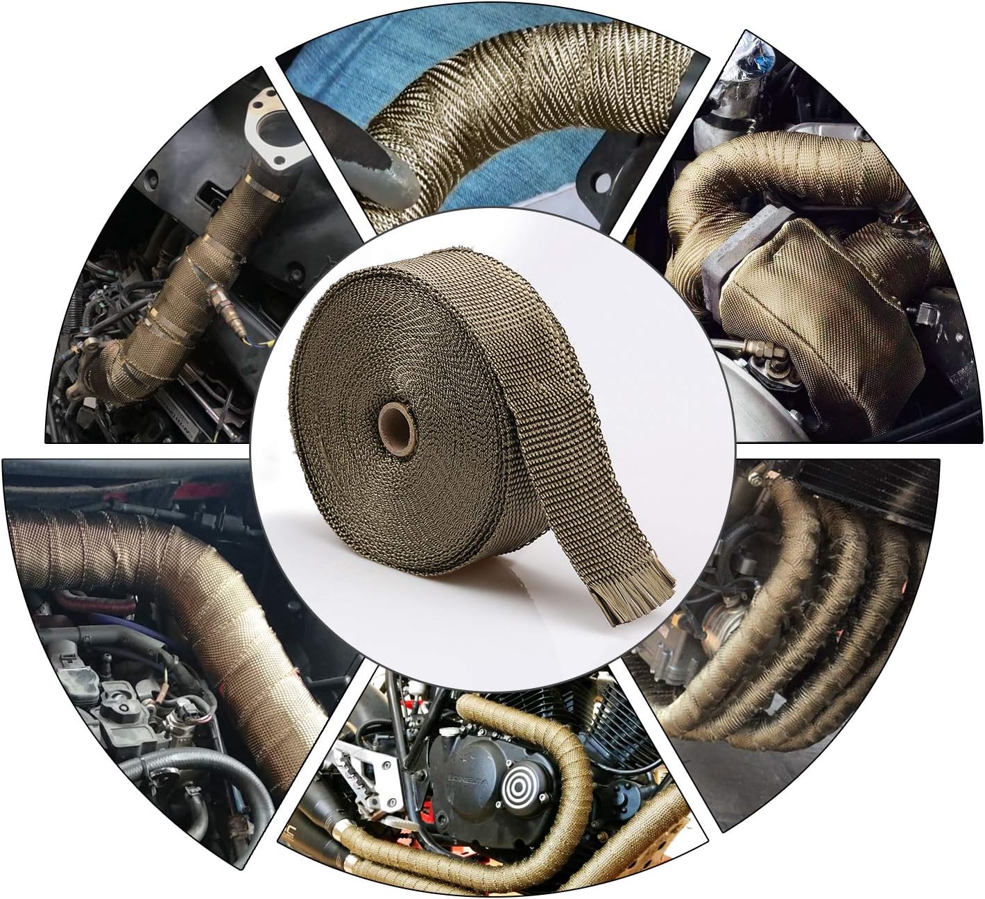 Package contain : 1 Piece Titanium Turbo Wrap & 2 Pieces Cool-Tape & 6 Pieces Zip Tie