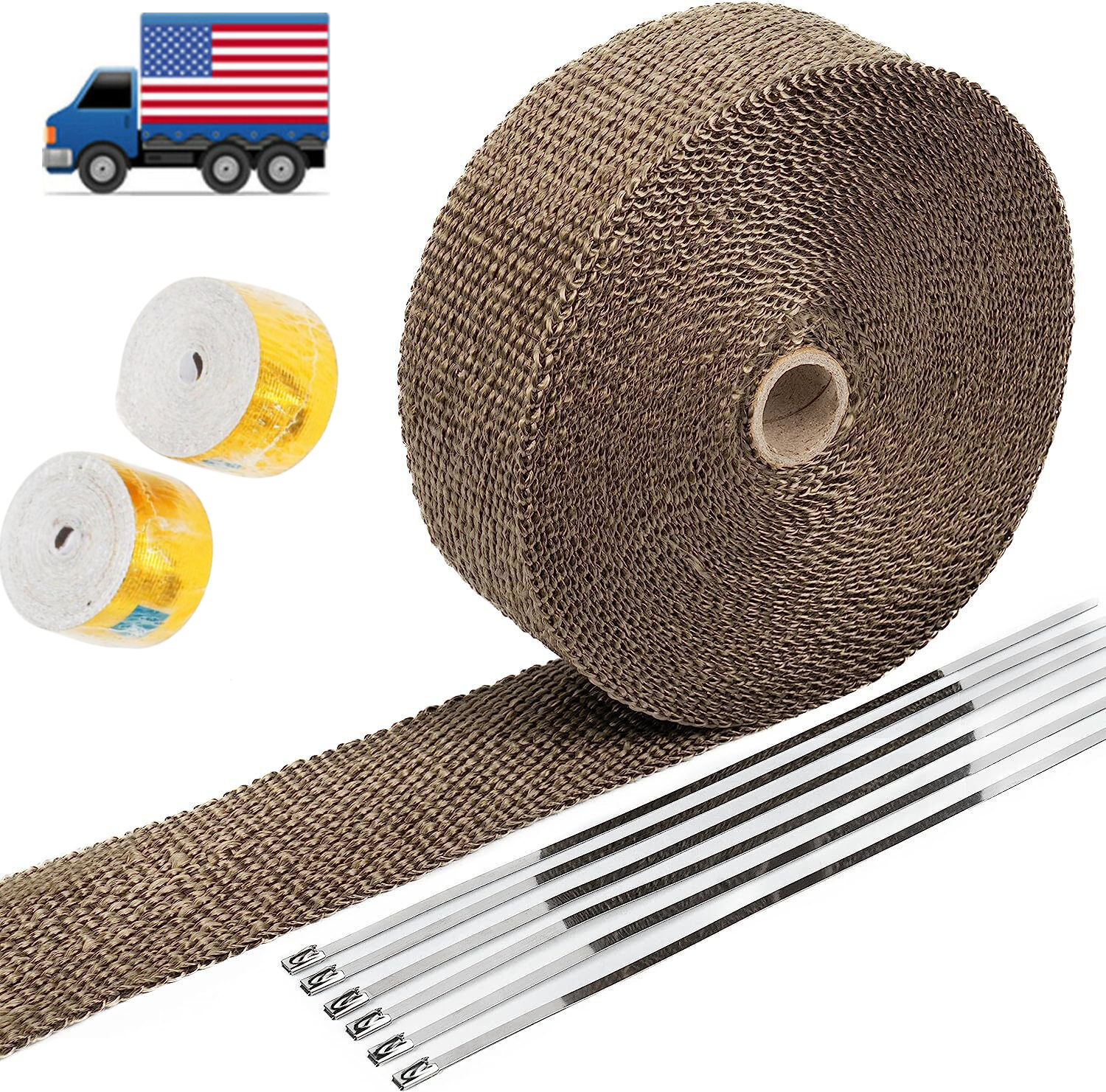 Titanium Wrap 1 Inch X 25 Feet Exhaust Header Heat Wrap & Gold Cool Tape + 6 Tie