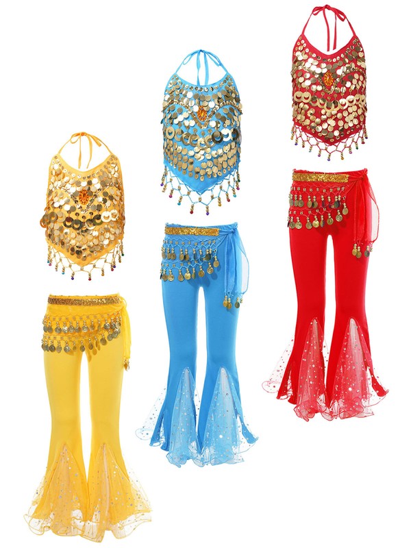 Girls Set Halloween Belly Dance Costume Fringed Waist Chain Outfit Halter 3PcsUSD 8.49
