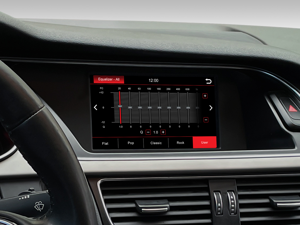 Das Dynavin-System behält die originalen Audimenüs bei, die auf