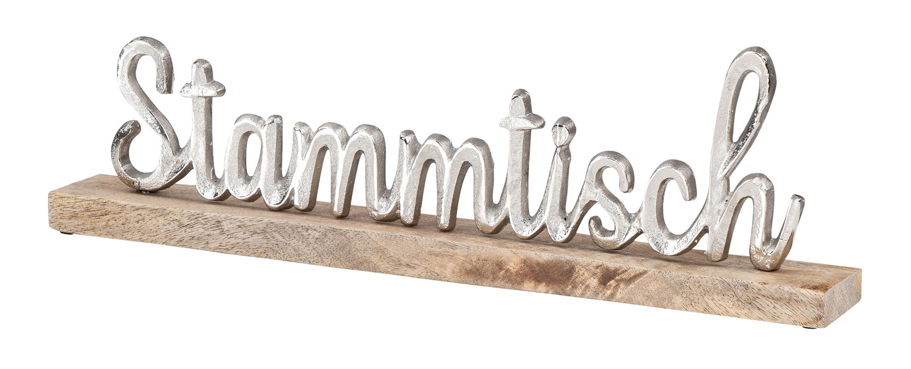 Schriftzug Stammtisch L40cm Metall Mango Silber Holz Tischdeko Deko AufstellerDetails zu dem Schriftzug: