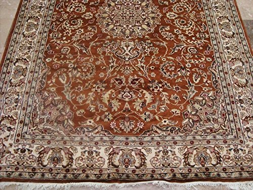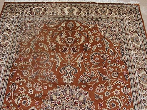 Exclusive Burnt Orange Rust Floral Hand Knotted Area Rug Wool Silk Carpet (9 x 6)'. For the perfect combination of unique, beautiful style and high-quality durability, the attention to detail on these beautiful contemporary rugs is noticed as soon as you lay eyes on the carpet. The rug to appear dull when viewed from one side, and shiny from the other side. Please view the picture at the bottom to see the bright side of the rug. This rug can help brighten up a room if you do not get much sunlight. Simply put the bright side facing the seating area and it will make the room appear surprisingly bright. Give your home an elegant touch with this area rug. Great for any decor, adds texture to the floor and complements any decor. This provides excellent, stylish design which makes your room gorgeous. Vacuum regularly to clean the dust and crumbs from settling into the roots of the fibers. 100% Genuine Hand Knotted-Rug not hand tufted.