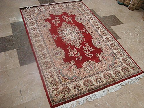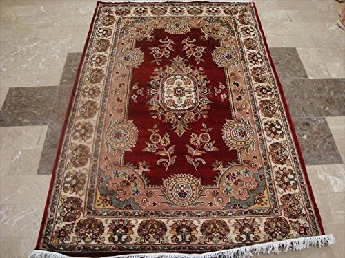 Exclusive Red Floral Lovely Hand Knotted Area Rug Wool Silk Carpet (6 x 4)'. For the perfect combination of unique, beautiful style and high-quality durability, the attention to detail on these beautiful contemporary rugs is noticed as soon as you lay eyes on the carpet. This durable carpet is perfectly styled for home furnishings. The rug to appear dull when viewed from one side, and shiny from the other side. Please view the picture at the bottom to see the bright side of the rug. This rug can help brighten up a room if you do not get much sunlight. Simply put the bright side facing the seating area and it will make the room appear surprisingly bright. This provides excellent, stylish design which makes your room gorgeous. Vacuum regularly to clean the dust and crumbs from settling into the roots of the fibers. Customer satisfaction is our top priority. 100% genuine hand knotted-rug not hand tufted.