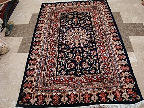 Mid Night Blue Love Flowers Area Rug Hand Knotted Wool Silk Carpet (6 x 4)'. For the perfect combination of unique, beautiful style and high-quality durability, the attention to detail on these beautiful contemporary rugs is noticed as soon as you lay eyes on the carpet. Blended color schemes match well with all styles of furniture and art. The rug to appear dull when viewed from one side, and shiny from the other side. Please view the picture at the bottom to see the bright side of the rug. This rug can help brighten up a room if you do not get much sunlight. Simply put the bright side facing the seating area and it will make the room appear surprisingly bright. Stay comfortable and feel free all year long with this brand-new rug. Give your home an elegant touch with this rug. Great for any decor, adds texture to the floor and complements any decor. 100% Genuine Hand Knotted-Rug not hand tufted.