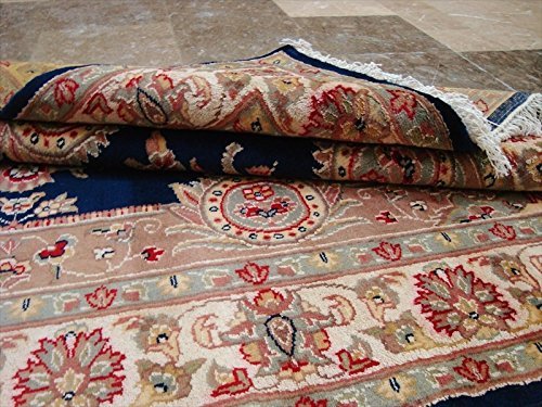 Mid Night Blue Floral Oriental Rug Hand Knotted Wool Silk Carpet (6 x 4)'. For the perfect combination of unique, beautiful style and high-quality durability, the attention to detail on these beautiful contemporary rugs is noticed as soon as you lay eyes on the carpet. Blended color schemes match well with all styles of furniture and art. It has elements such as medallions and rosettes, presented in more stylized manner and with a new dimension. The rug to appear dull when viewed from one side, and shiny from the other side. Please view the picture at the bottom to see the bright side of the rug. This rug can help brighten up a room if you do not get much sunlight. Simply put the bright side facing the seating area and it will make the room appear surprisingly bright. Stay comfortable and feel free all year long with this brand-new rug. Give your home an elegant touch with this rug. 100% Genuine Hand Knotted-Rug not hand tufted.