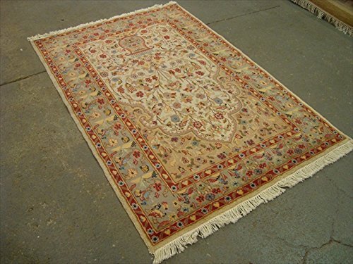 Exclusive Tree of Life Birds All Over Floral Designed Brand New Area Rugs Silk Wool Hand Knotted Carpet (6 x 4)'. This rug is perfect for bed room and living room. Made of Silk / Wool. Beautiful Tree of Life design on the Light Pestal background, easily compatible with most home decor. For the perfect combination of unique, beautiful style and high-quality durability, the attention to detail on these beautiful contemporary rugs is noticed as soon as you lay eyes on the carpet. The rug to appear dull when viewed from one side, and shiny from the other side. Please view the picture at the bottom to see the bright side of the rug. This rug can help brighten up a room if you do not get much sunlight. Simply put the bright side facing the seating area and it will make the room appear surprisingly bright. Stay comfortable and feel free all year long with this awesome rug. Give your home an elegant touch with this area rug. Great for any decor, adds texture to the floor and complements any decor. 100% Genuine Hand Knotted-Rug not hand tufted.