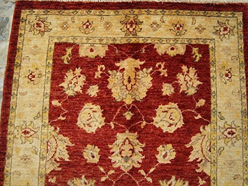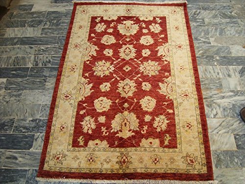 Gorgeous Red Chobi Zeigler Mahal Vege Dyed Area Rugs Hand Knotted Carpet (4.11 X 3.3)'. Chobi rugs are traditionally from the border region of Pakistan and Afghanistan. The word "chobi" itself is Farsi for "color like wood." Our Chobis tend to have large geometric floral patterns and they are all hand knotted of hand spun vegetable dyed ghazni wool. The dyes are made entirely from hand gathered fruits, vegetables, roots, tree barks and dried fruit shells, making Chobis the most labor-intensive of all of our tribal carpets. Natural Dye Chobis are renowned for their lanolin-rich luster and stunning natural coloring. Their colors range from soft muted tans and browns to rich coppers, deep maroons, and sage greens. Our natural dyeing techniques have been refined over the years to ensure a natural dye that is steadfast and long-lasting. 100% Genuine Hand Knotted-Rug not hand tufted.