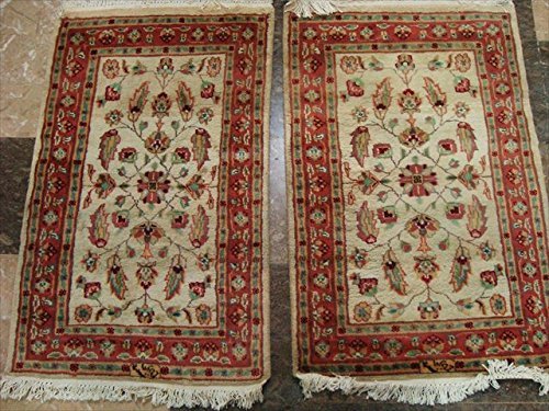 Excellent Ivory Flowers Medallion Hand Knotted Rug Wool Silk Carpet Pair (3 X 2)'. Add a classic look in your home with this rug. The rug to appear dull when viewed from one side, and shiny from the other side. Please view the picture at the bottom to see the bright side of the rug. This rug can help brighten up a room if you do not get much sunlight. Simply put the bright side facing the seating area and it will make the room appear surprisingly bright. Excellent Ivor Madal design with multi-color, sure to catch your attention. This rug is easily compatible with most home decor. Blended color schemes match well with all styles of furniture and art. Give your home an elegant touch with this area rug. Great for any decor, adds texture to the floor and complements any decor. Measures approximately 2.0 x 3.3 Ft (99 x 60 cm) and 2.1 x 3.2 FT (99 x 64 cm). 100% Genuine Hand Knotted-Rug not hand tufted.
