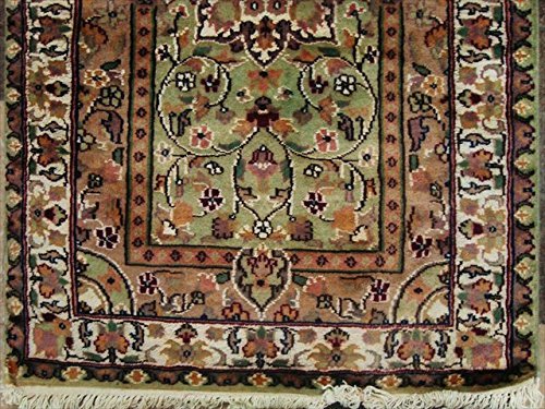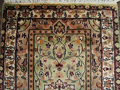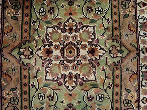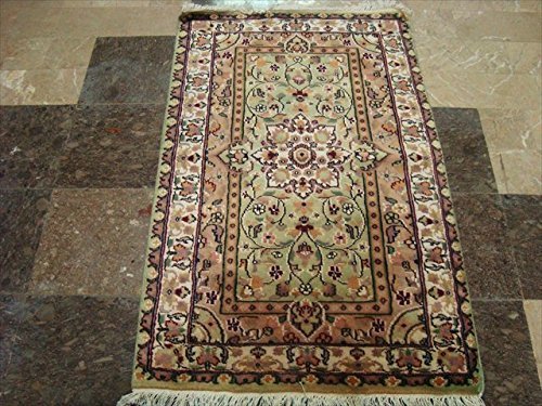 Green Ivory Touch Excellent Designed Rectangle Area Rugs Hand Knotted Wool Silk Carpet (4 x 2.6)'. Made in Central Asia. In this rug, the artist is trying to show a Thought of Beauty in to Flowers. Add a classic look in your home with this rug. Made of Wool / Silk. For the perfect combination of unique, beautiful style and high-quality durability, the attention to detail on these beautiful contemporary rugs is noticed as soon as you lay eyes on the carpet. The rug to appear dull when viewed from one side, and shiny from the other side. Please view the picture at the bottom to see the bright side of the rug. This rug can help brighten up a room if you do not get much sunlight. Simply put the bright side facing the seating area and it will make the room appear surprisingly bright. Attractive Flower Med design with multi-color, sure to catch your attention. This rug is easily compatible with most home decor. Blended color schemes match well with all styles of furniture and art. Give your home an elegant touch with this area rug. Great for any decor, adds texture to the floor and complements any decor. 100% Genuine Hand Knotted-Rug not hand tufted .