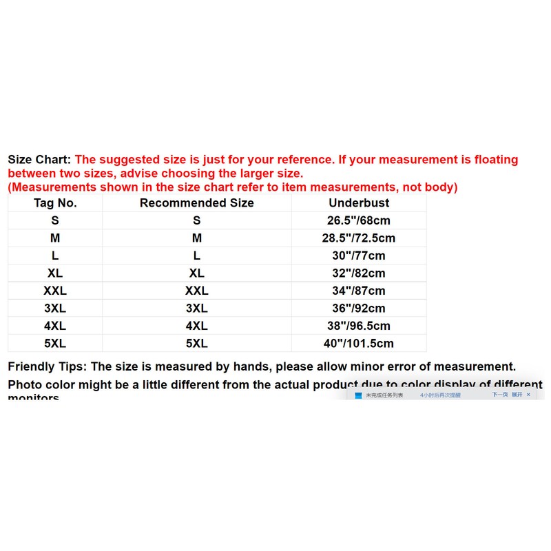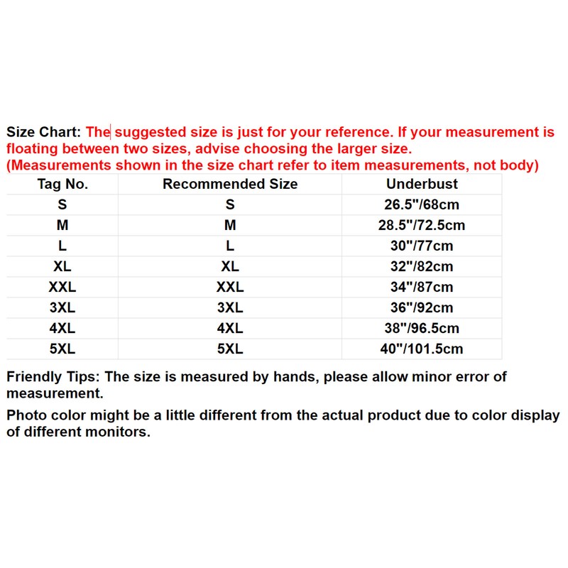 | Tag No. | Recommended Size | Underbust(Fastened Size) |
