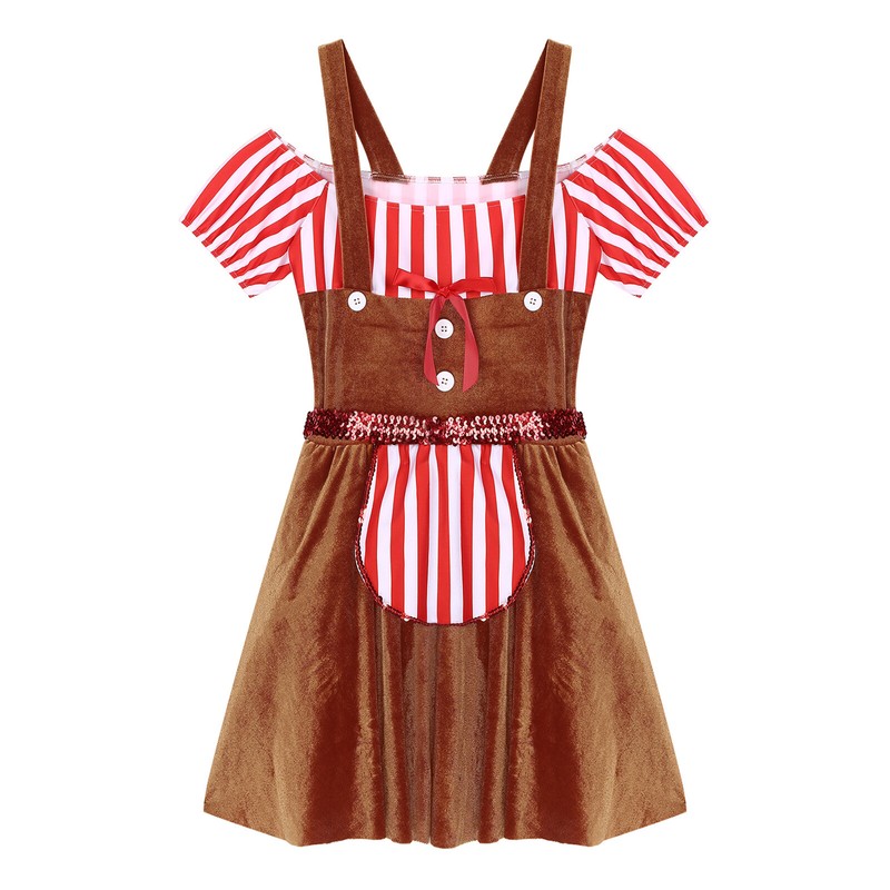US Women's Dress up Gingerbread Costume for Christmas Cosplay Party Velvet Dress