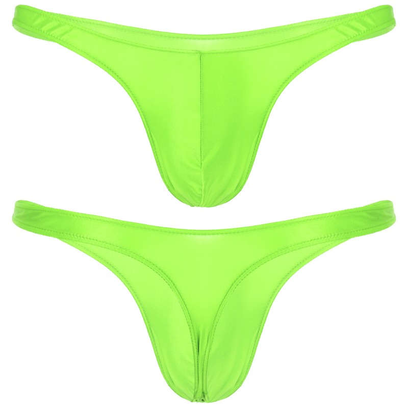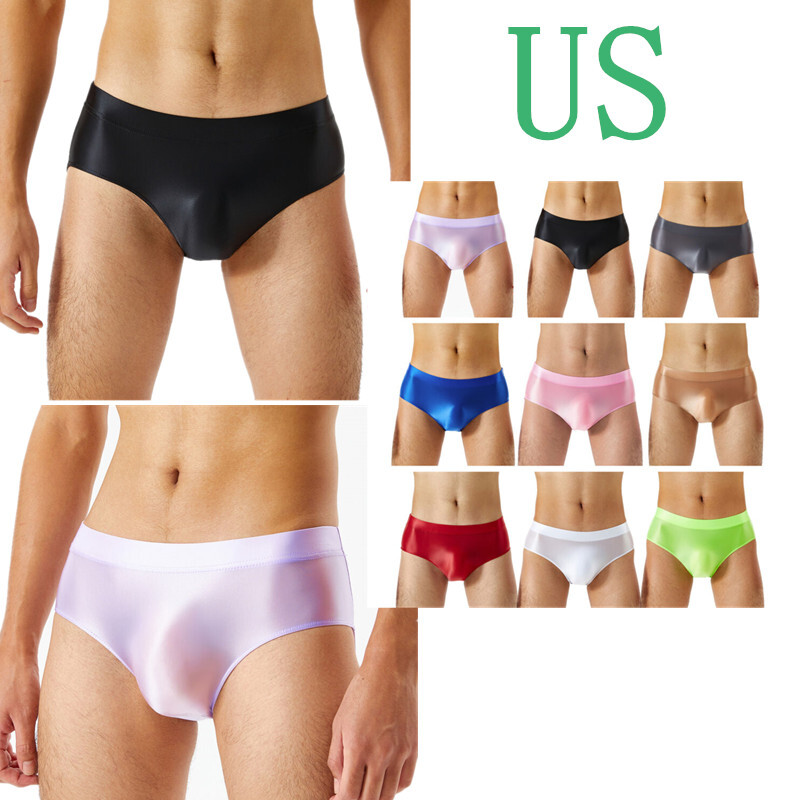 Mens Glossy Bulge Pouch Thongs Underwear Solid Color Low Waist Briefs Swimwear.