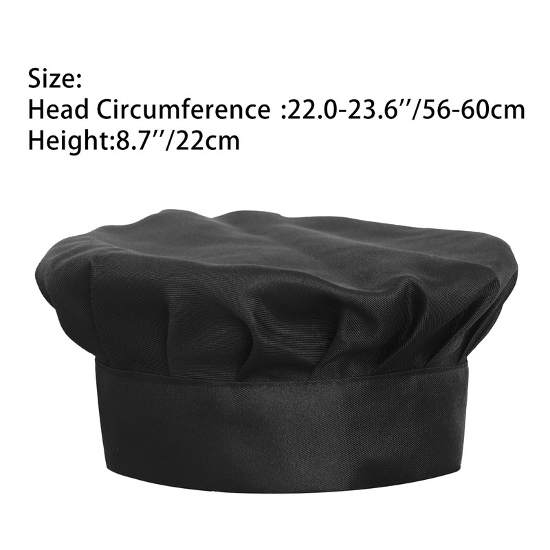 Kochmütze für Männer und Frauen, plissiertes Design, einfarbig, 2 Farben zur Auswahl, einfach mit Ihrer Küchenuniform zu kombinieren.