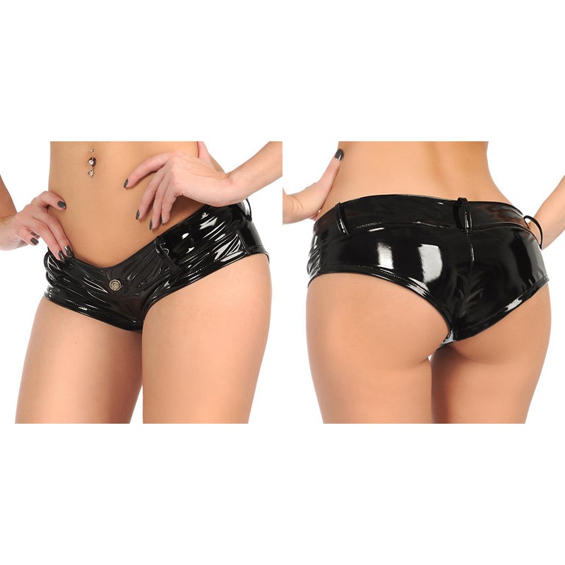 Designed with low rise, front button closure and glossy surface, hot pants have belt loops for waist belt to create a hot and stylish look.