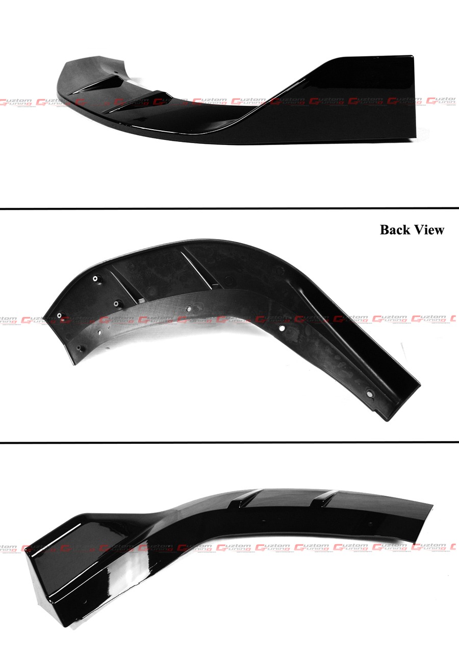 - Package Includes : 1 Set of 3 Piece Designed Glossy Black Front Bumper Lip Kit With Accessories Shown In Pictures