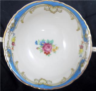 This elegant pattern was produced by Syracuse from 1962 through 1967 and is now discontinued. It features gold scrolls and lines with blue panels on a white body.