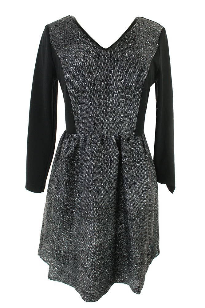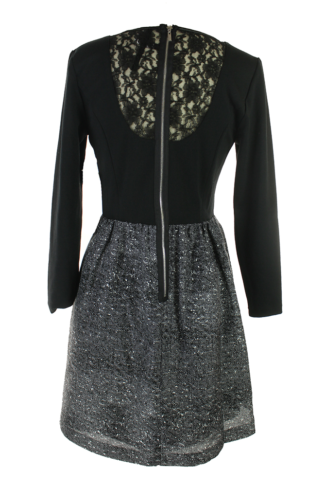 Kensie Black-White 3/4-Sleeve Lace-Inset Dress XL