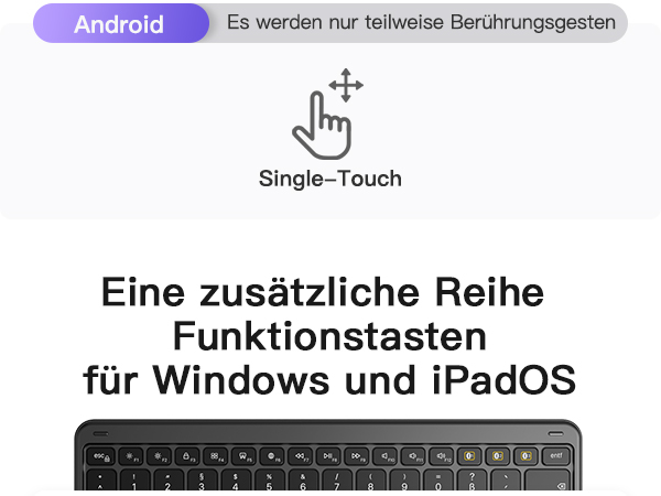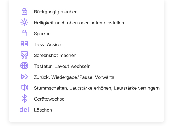 Unabhängige Tastenkombinationen: Speziell angepasste Tastenkombinationen für Windows- und Android-Systeme, die alle Tastenkombinationsfunktionen von Windows- und Android-Systemen unterstützen.