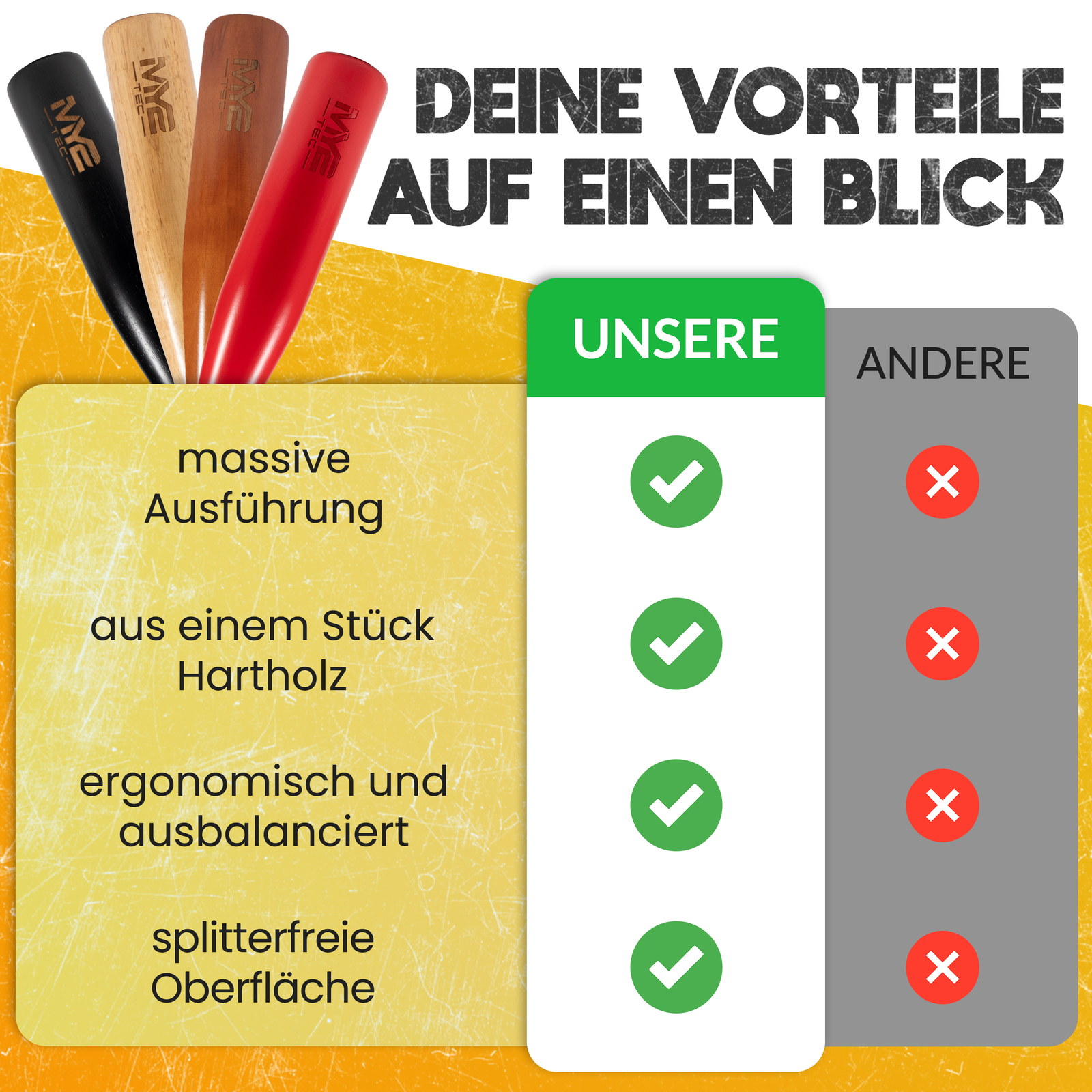 Effektive Selbstverteidigung - perfekt gewichtet und optimal ausbalanciert für Ihre Sicherheit - sowohl für Frauen als auch Männer. Baseball-Holzschläger ist nicht ausgehöhlt, sondern als eine robustes Massivholz-Schläger mit glatter splitterfreier Oberfläche konzipiert