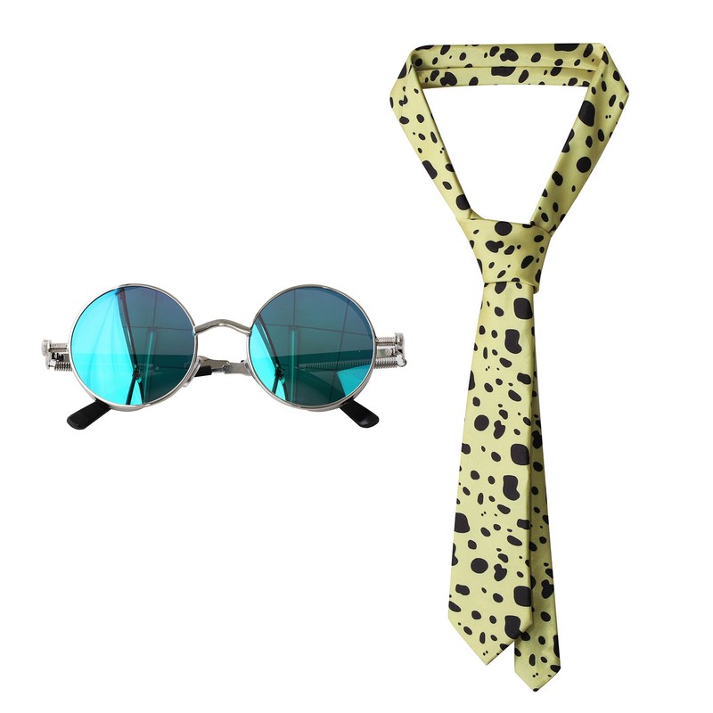 Material: Glasses: 60% Metal, 40% Plastic; Tie: 100% Polyester