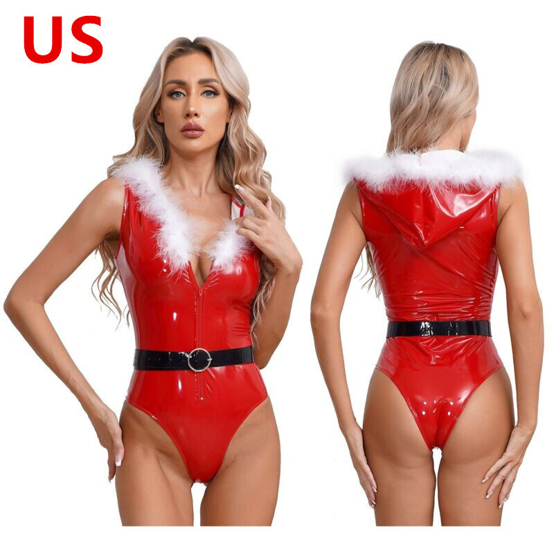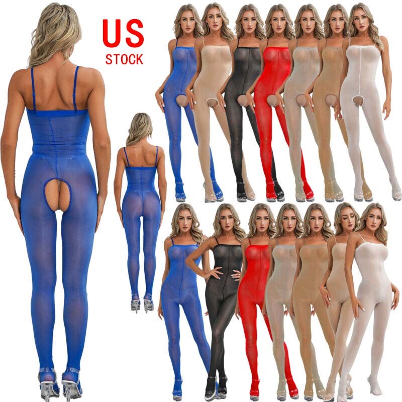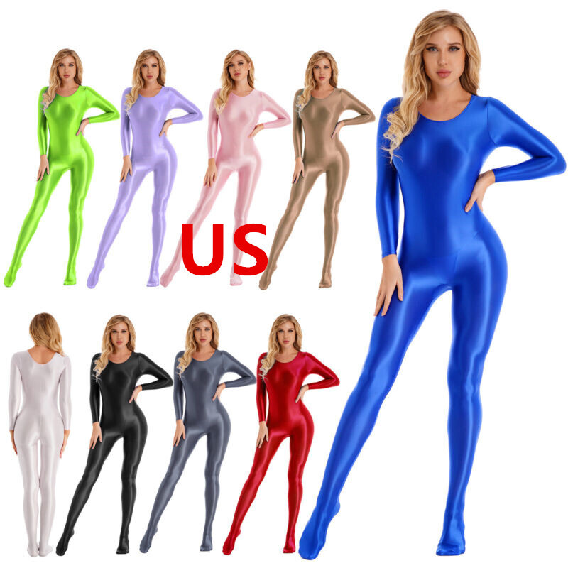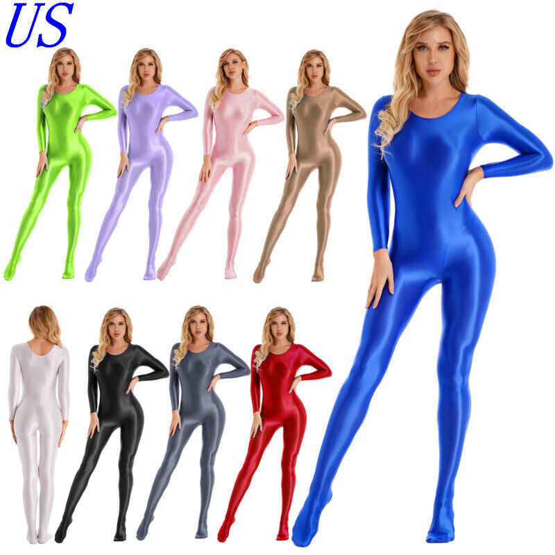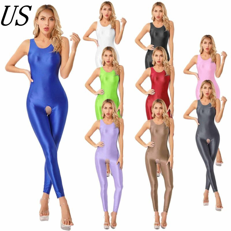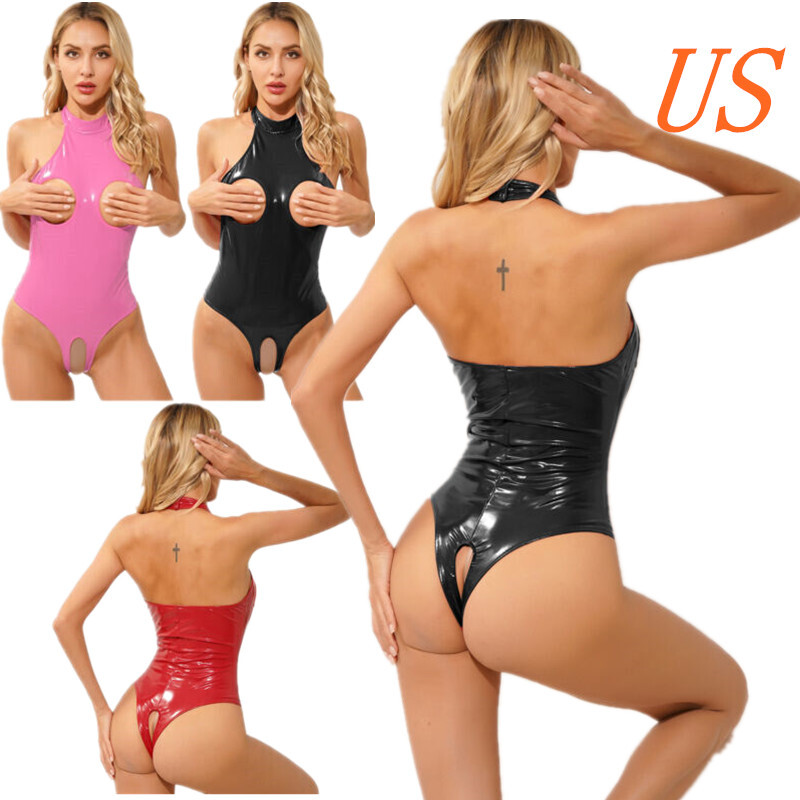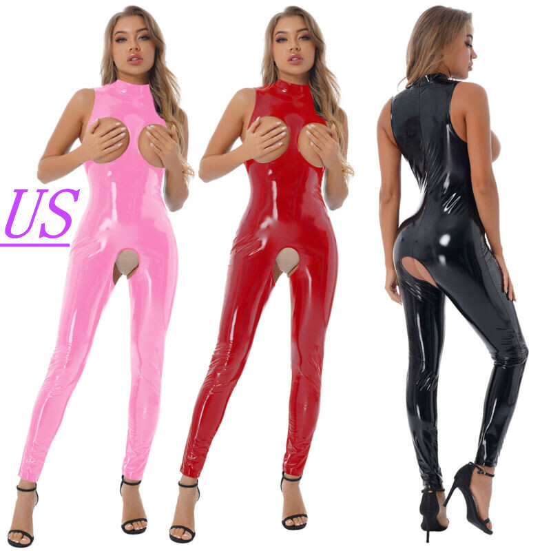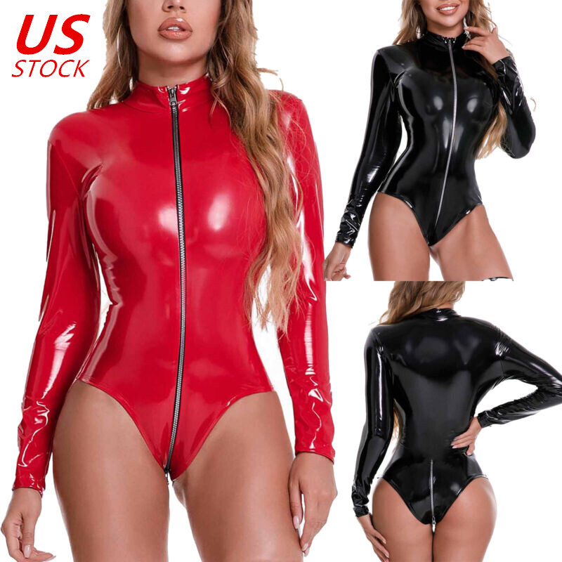 US Women Wet Look Jumpsuit Faux Leather Leotard Glossy Bodysuit Party Clubwear