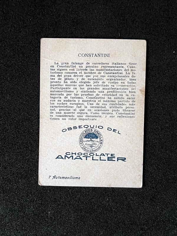 1928 Racing Car Driver Pioneer Pioneer CONSTANTINI Card #7 Amatller Automovilism