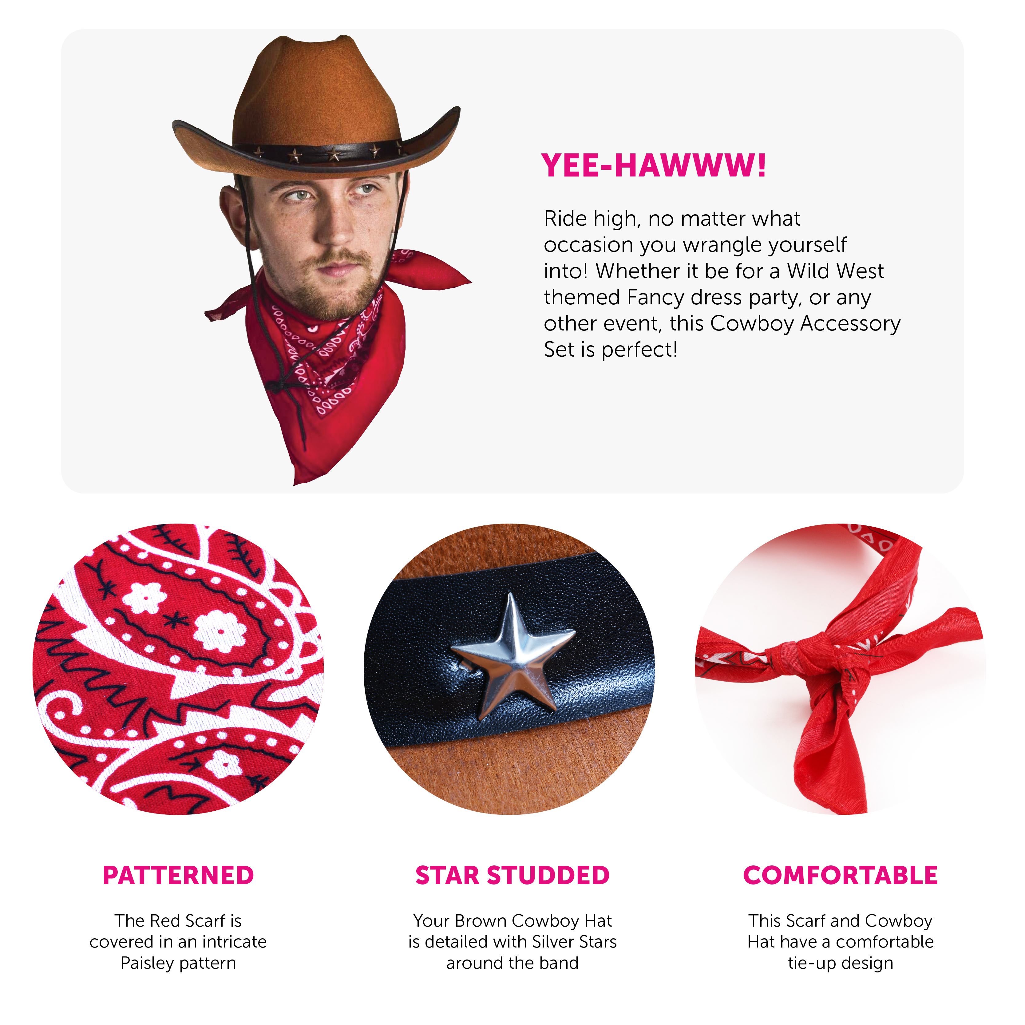 Ideal for Various Occasions: Whether attending a country music concert, participating in a rodeo, or dressing up for a costume party, this set will be your go-to choice.