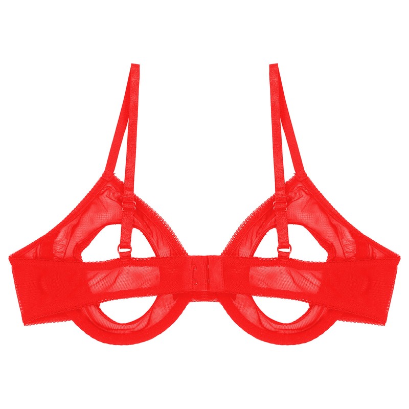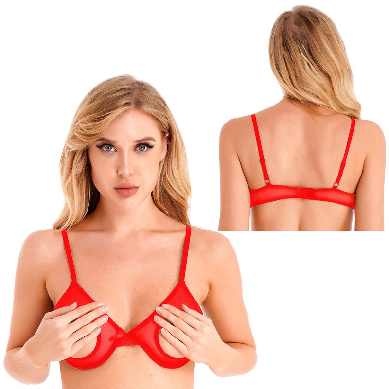 Womens Open Cups Underwired Bra Tops Adjustable Straps Sheer Mesh Brassiere Underwear.