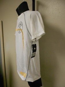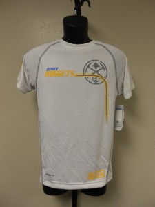 This is a brand NEW Adidas Denver Nuggets white Climalite compression short sleeve shirt with screen printed detail. (SEE PHOTOS). Fitted cut. 100% polyester. Nice shirt and saves you money!