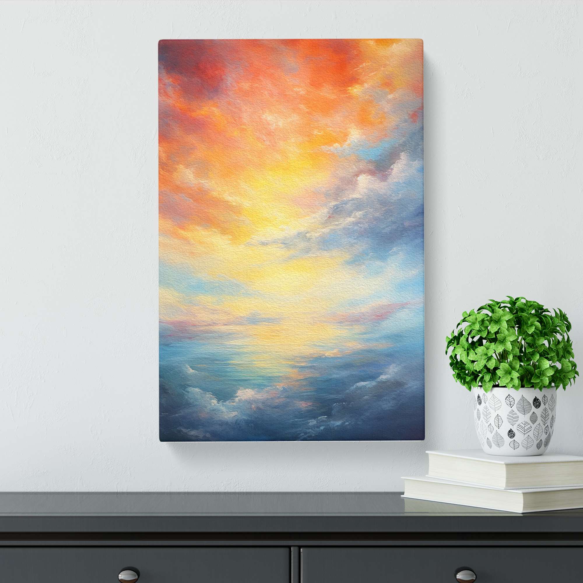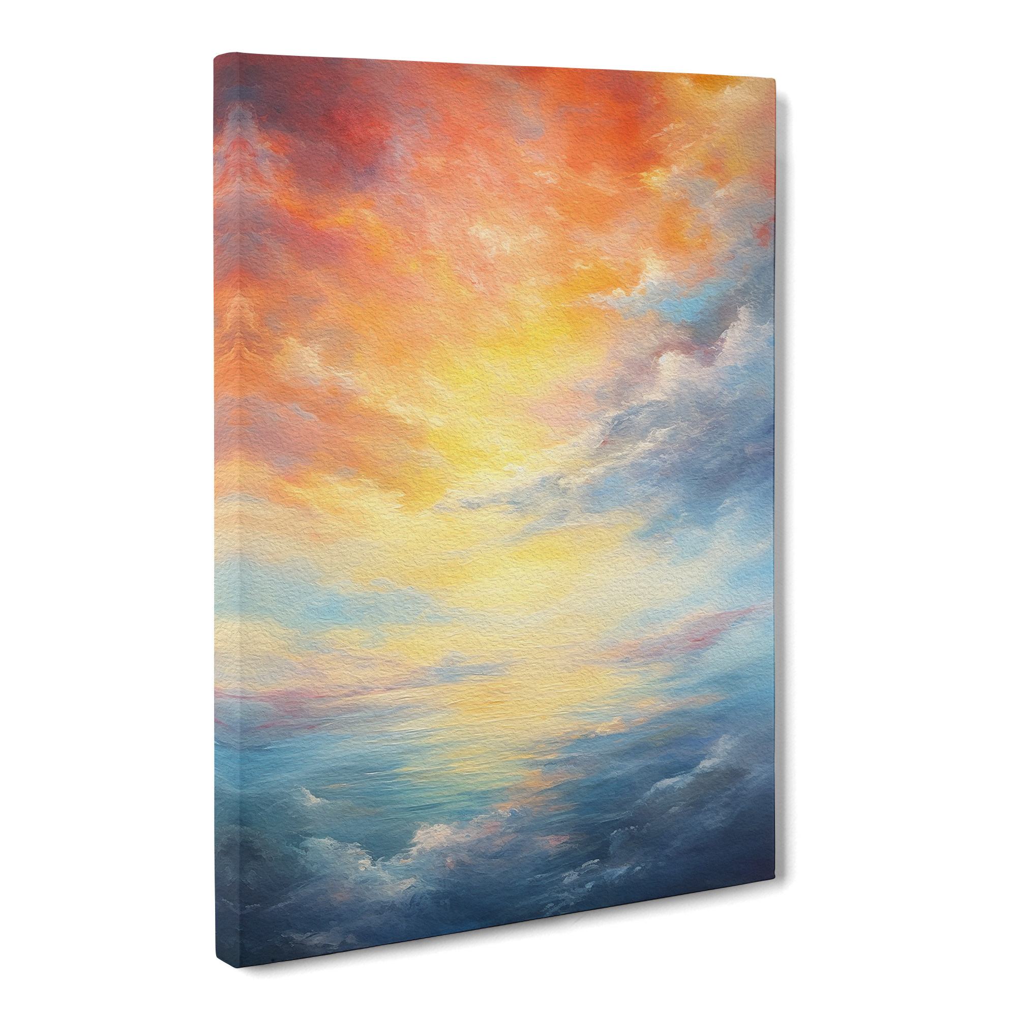 Transform your living space with our framed canvas wall art prints. Designed to elevate your home decor, this stunning picture titled Cloudy Sky Expressionism Art is crafted in the UK, and boasts a contemporary gallery wrapped finish. Utilising high-quality inks and materials, the colours of the wall art print are rich, vibrant, and true to life. The canvas is stretched over a 30mm deep frame creating a stylish wall art picture that is ready to hang in your living room, lounge, bedroom, dining room and home office.