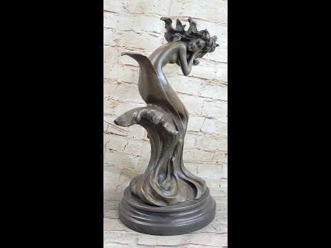 Water Goddess Mermaid Girl in Ocean Waves Nautical Bronze Figure Statue Sculpture DS-408