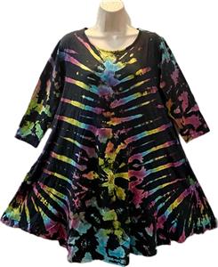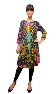 Artsy clothing for expressive women! Presenting classic gypsy hippie chick bohemian shabby chic styles for creative women. Handmade boutique styles at affordable prices. 97% Viscose 3% Spandex Stretch mudmee tie dye swing gypsy peasant festival dress. U hemline is slightly longer in the middle and shorter on the sides. Very versatile. The model is just to give you an idea of what the garment might look like on, but color and pattern in the separate shots are closer to what we actually have in stock. Tie dye patterns vary slightly from item to item as typical with the hand tie dye process. Check the measurements below.