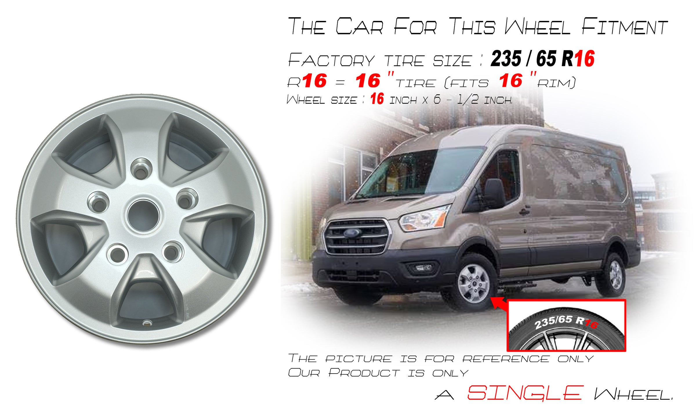 For Ford Transit 150 250 350 OEM Design Wheel 16" 2017-2021 16x6.5 Silver Replacement Rim