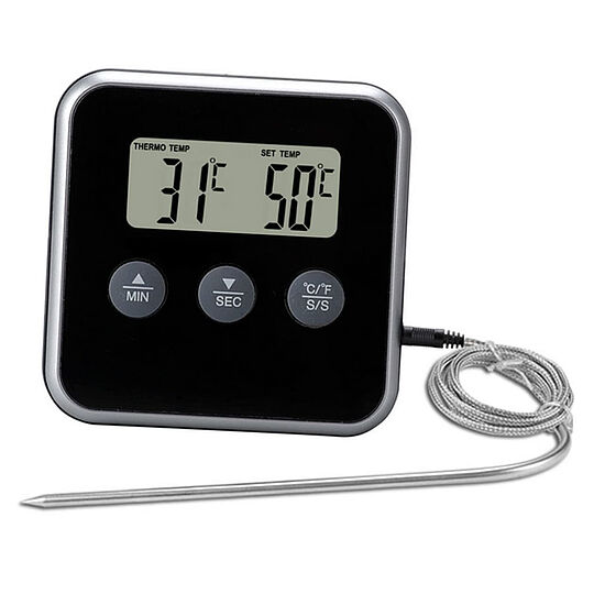 ✅ TEMPERATURALARM – kontinuierliche Temperaturüberwachungsfunktion. Nachdem Sie die ausgewählte Temperatur (0 - 300 Grad) am Gerät eingestellt haben, informiert Sie das Thermometer über das Erreichen der eingestellten Temperatur durch die Aktivierung eines akustischen Alarms.