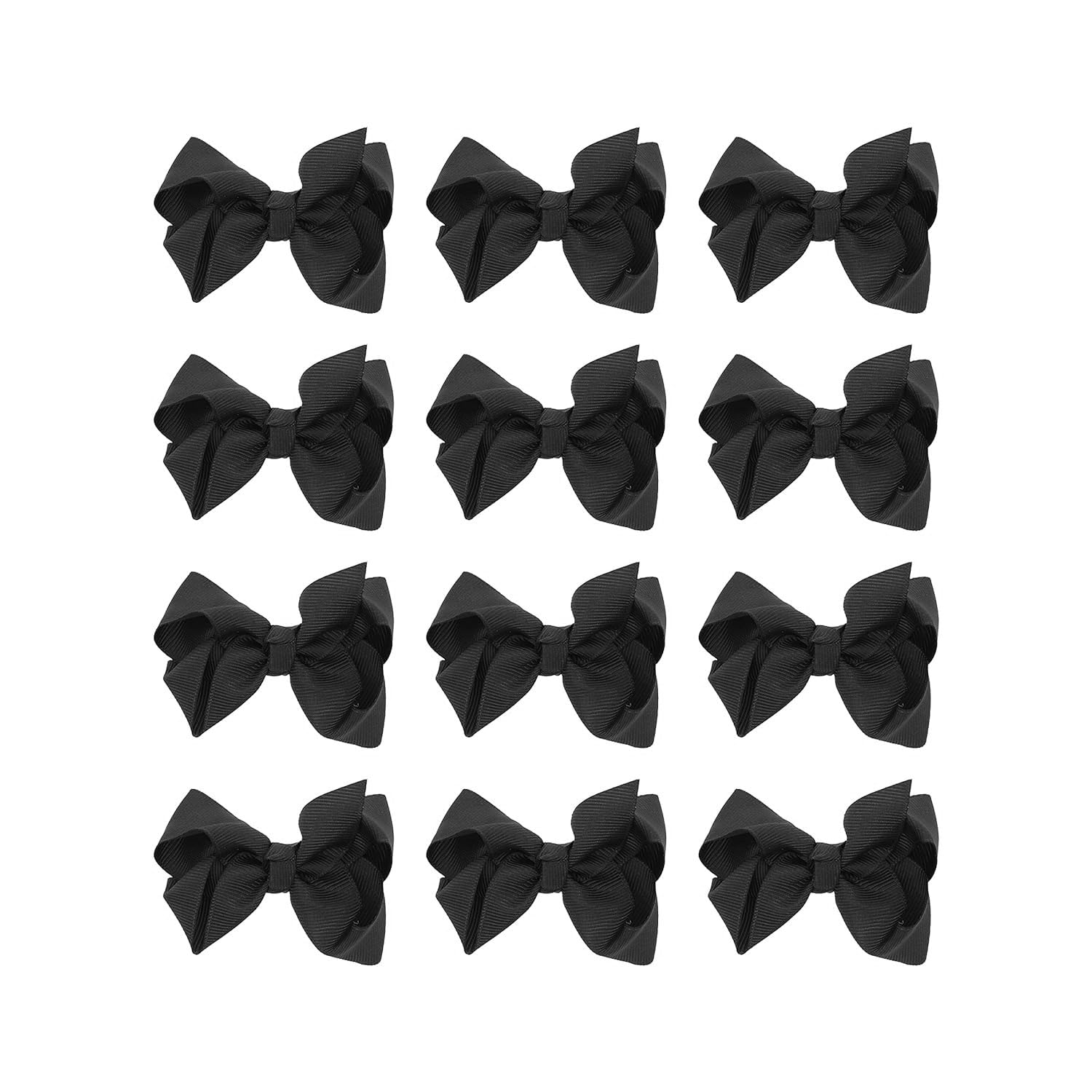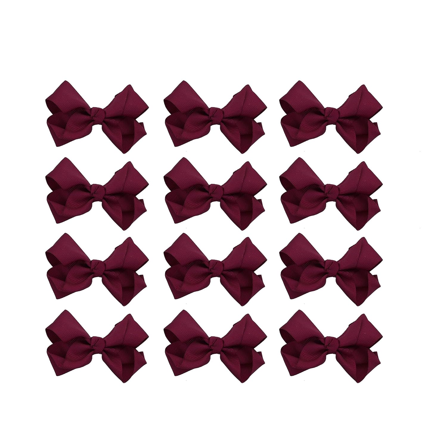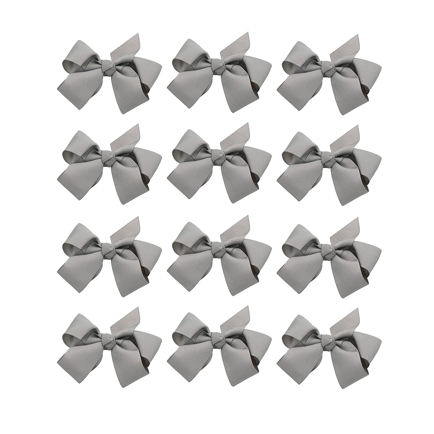 The perfect hair bow your little one wont want to take out of her hair. Soft grosgrain ribbon bow attached to sturdy clip. 3 inches wide is the perfect size for your little girl's face. Set of 12 hair bows.