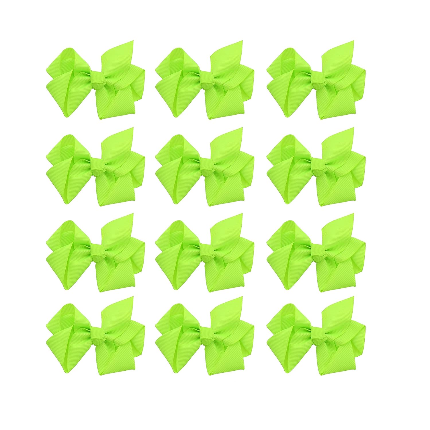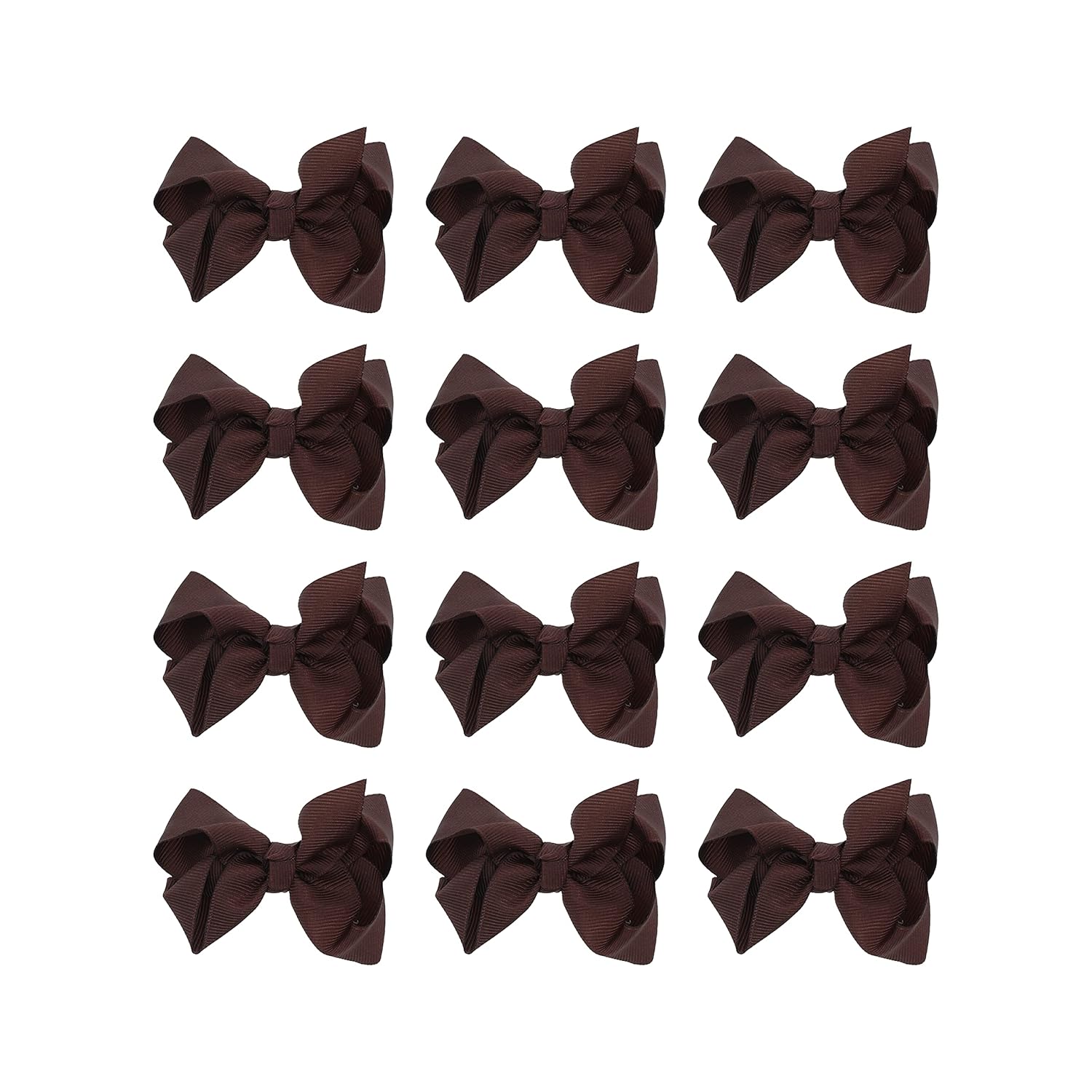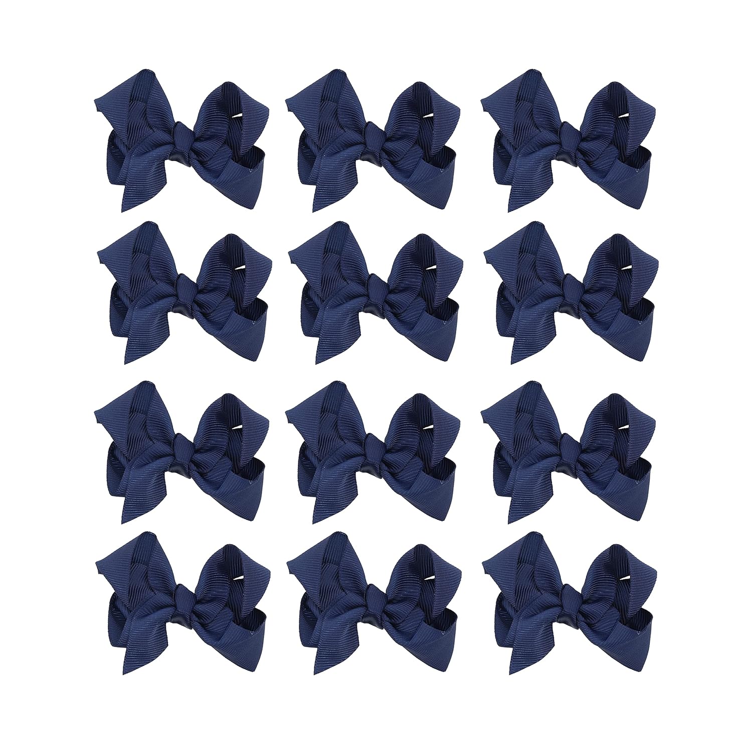 The perfect hair bow your little one wont want to take out of her hair. Soft grosgrain ribbon bow attached to sturdy clip. 3 inches wide is the perfect size for your little girl's face. Set of 12 hair bows.