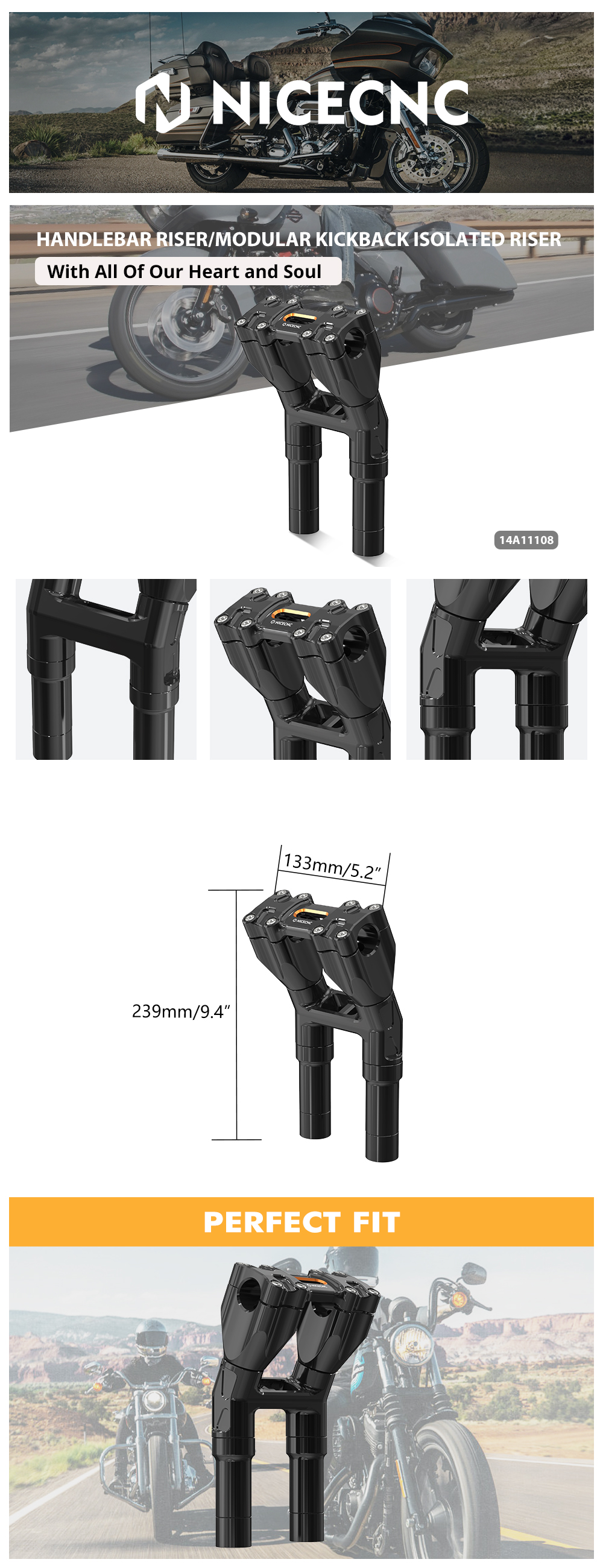 【Adjustable Height】The modular and detachable design allows you to customize the riser legs to achieve the desired height. You can raise your bars by a total of 8.25“ (7.25” without the spacers),this is the must-have part for anyone looking to upgrade their handlebars.