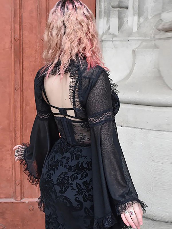 See-through lace with vintage floral pattern is full of steampunk and gothic style, while brings a stylish look for you.