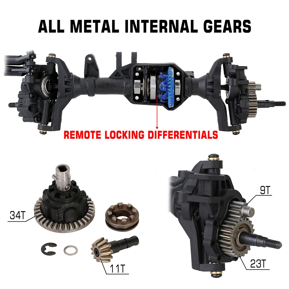 1. High Ground Clearance:RC axles front rear portal provide incredible ground clearance.