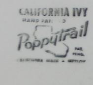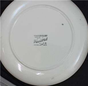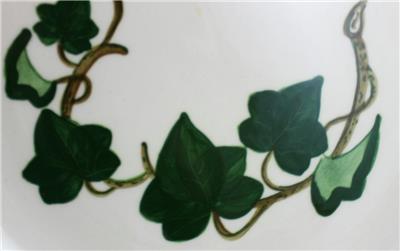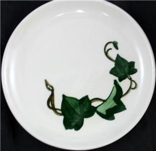 This pattern was produced by Metlox from 1946 through 1986 and is now discontinued. It features green ivy leaves and brown stems on a coupe shape plate.